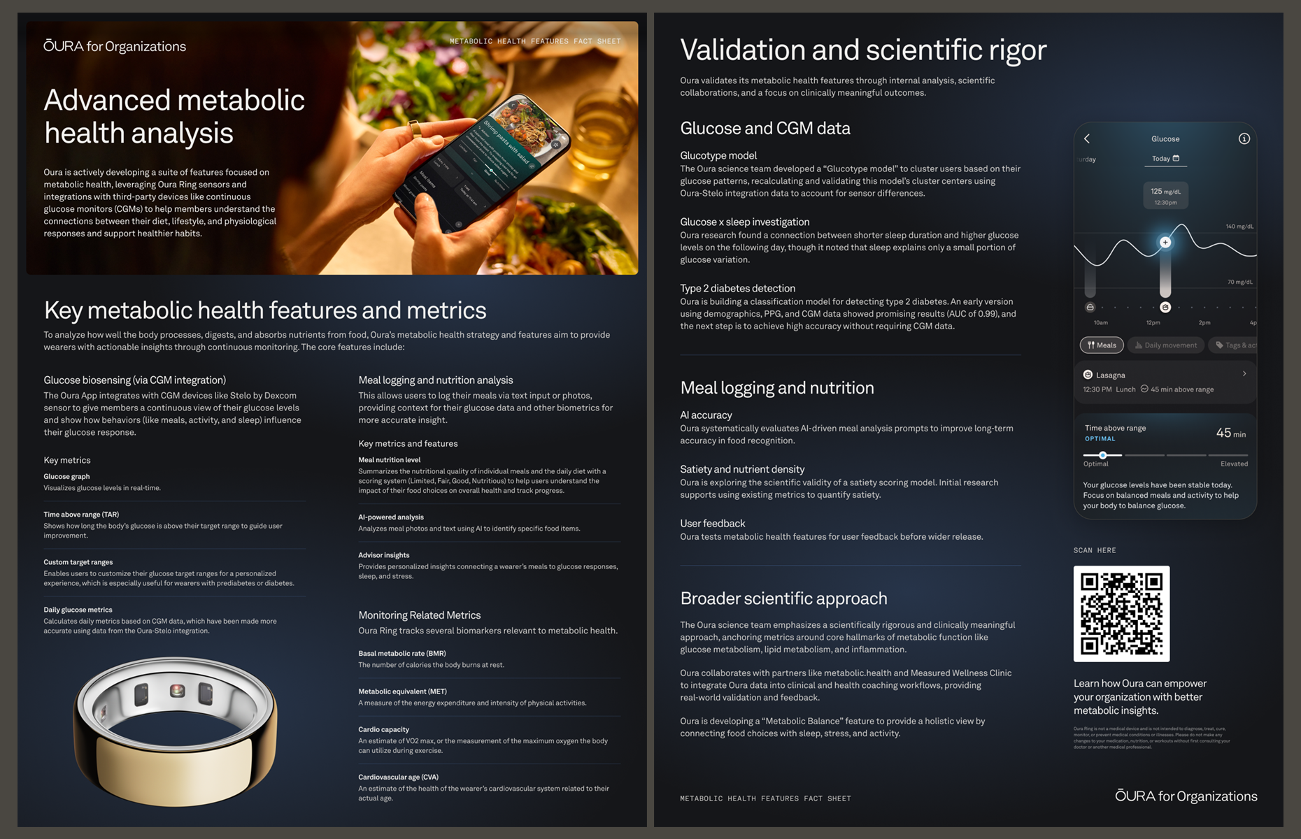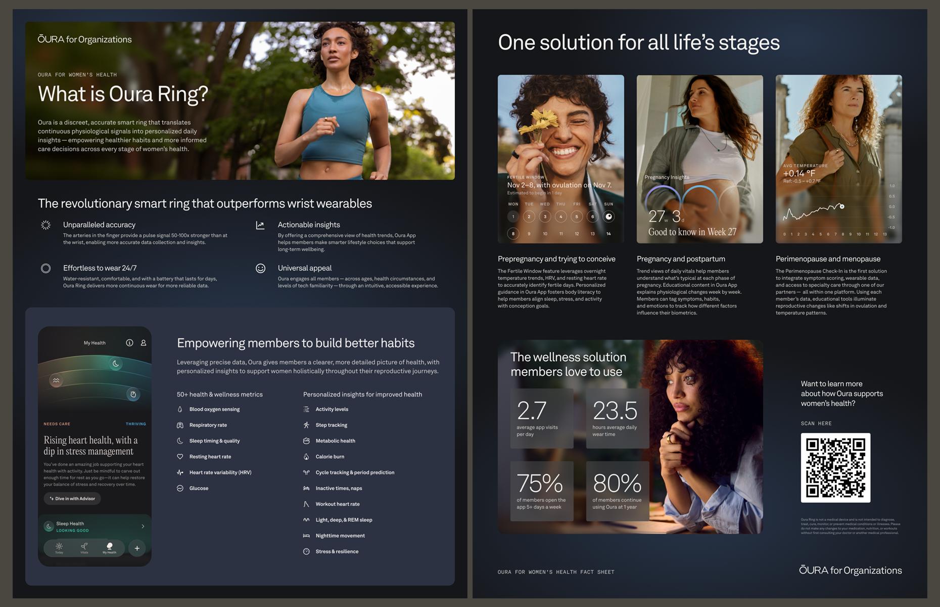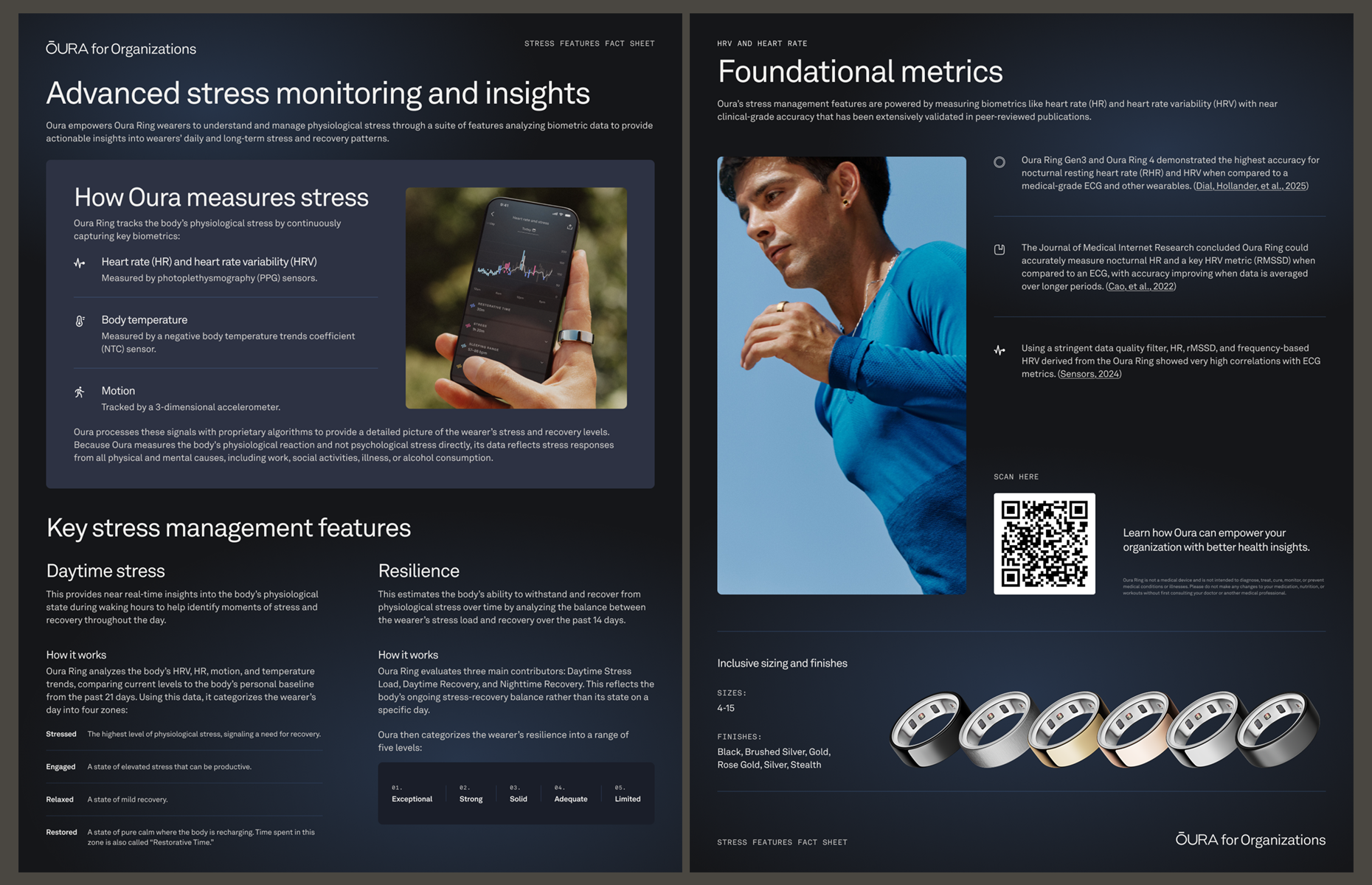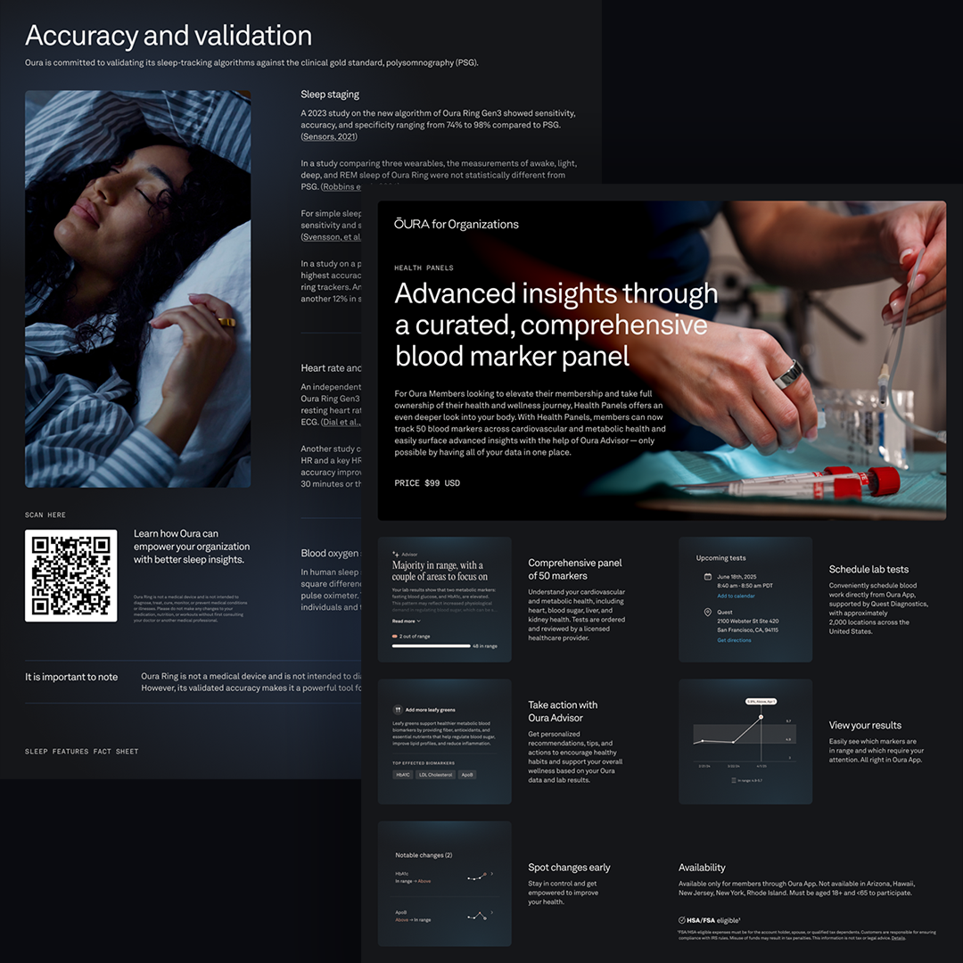 While working with MERGE, I had the great opportunity to work as a creative and design strategy lead on the Oura Ring and Oura for Organizations B2B account.The work consisted primarily of designing and delivering high-impact dual-sided one-pagers (digital and print), sales presentations, scalable presentation templates, OLVs, and brand-aligned visual guidelines and design systems, ensuring consistency and scalability following a major brand refresh.